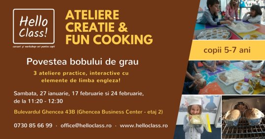 Un atelier cu adevarat delicios in care copiii de 6-8, 9-11 si 12-15 ani invata sa pregateasca gustari sanatoase si simple. Este o modalitate excelenta de a-i introduce in arta culinara si de a-i educa despre alimentatia sanatoasa.