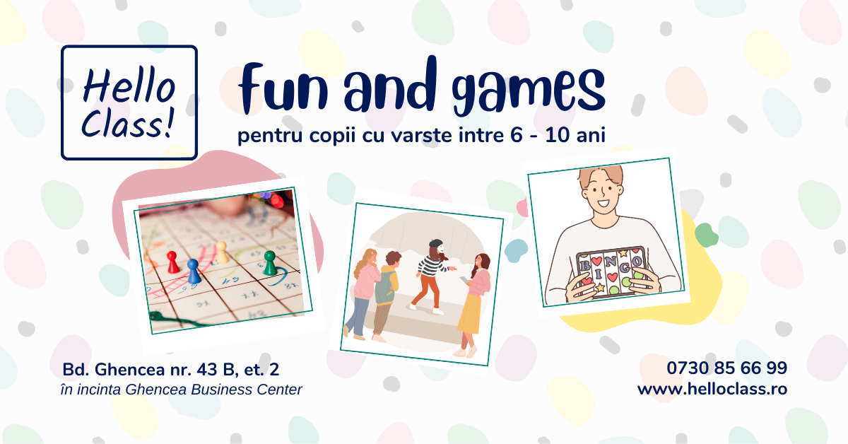Atelier cu jocuri in limba engleza pentru copii cu varste intre 6-8 ani sau 9-10 ani.